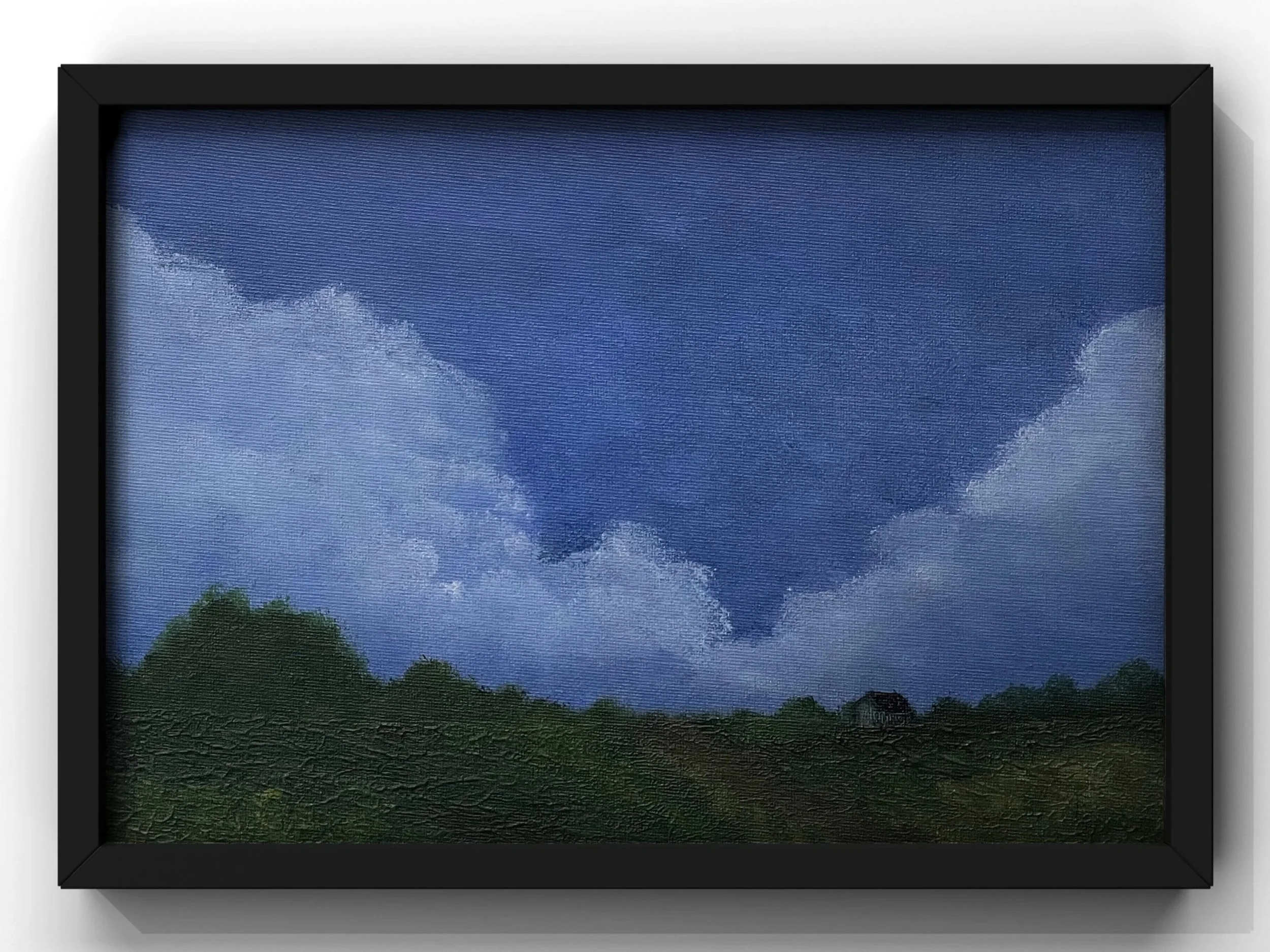 I painted this as a reminder of how grounding it feels to stand beneath a vast sky. There’s a calm that comes from knowing the world keeps moving, even when we pause. It’s about finding peace in stillness — about feeling held by something larger than ourselves.