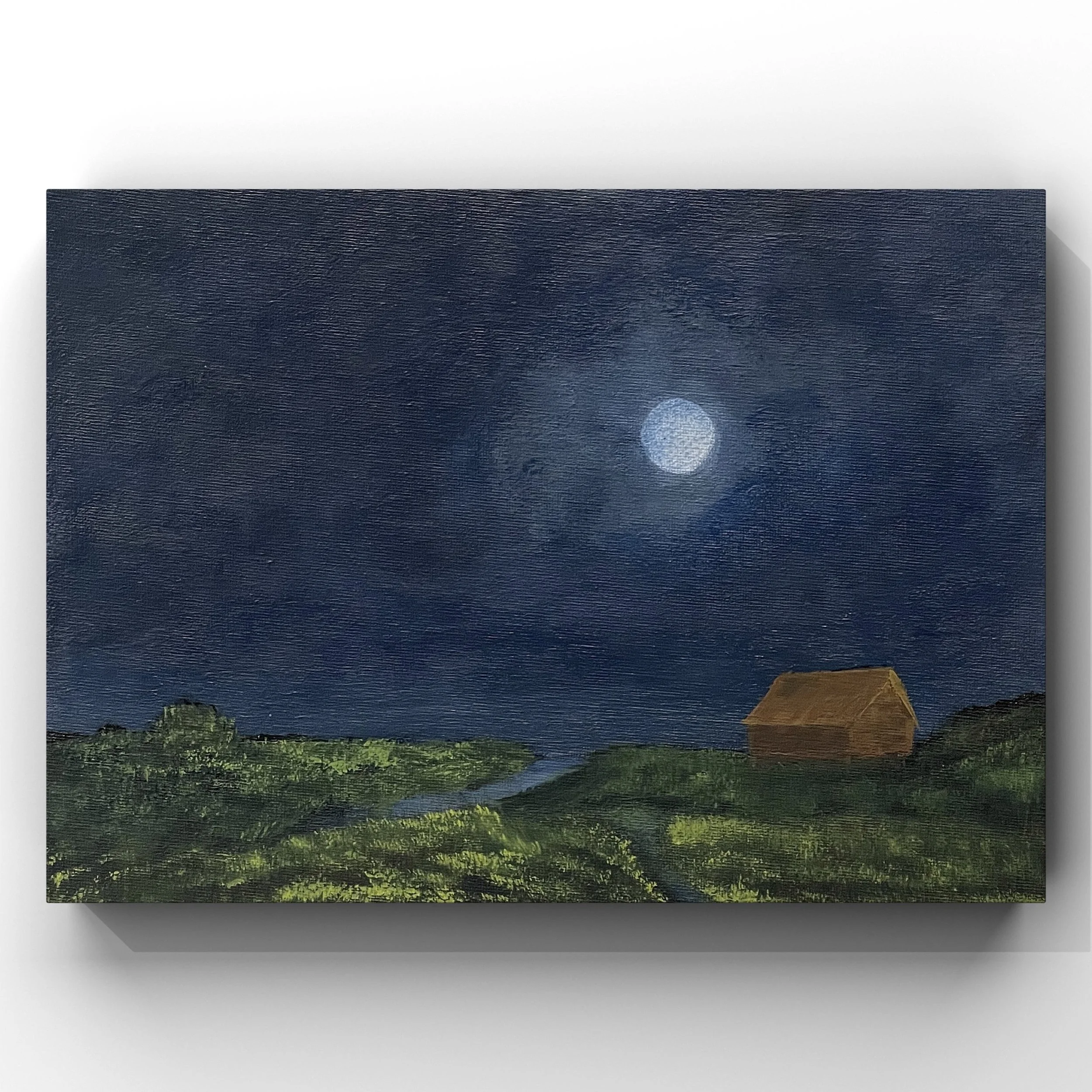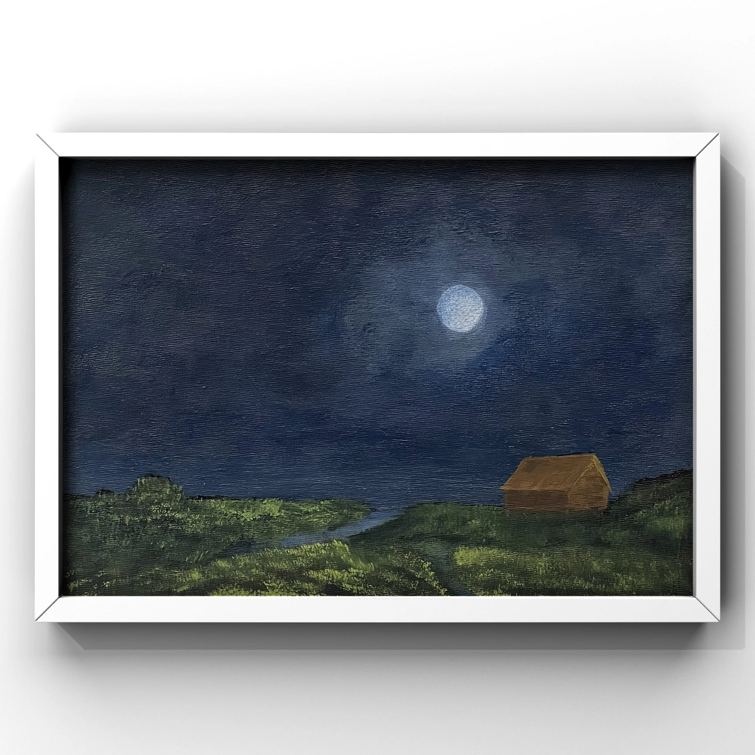 There’s a hush that only the moon brings. I painted this while thinking about nights that hold both peace and reflection — where the world feels still and gentle. It’s about slowing down and finding quiet strength in the calm.